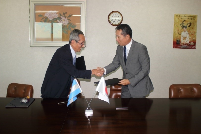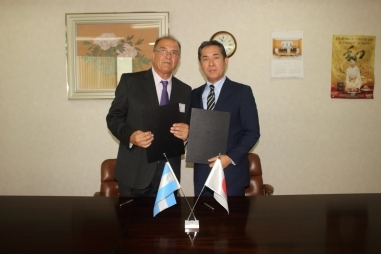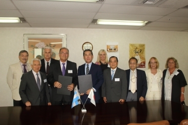 平成28年11月2日、在アルゼンチン日本国大使館内において、福嶌大使とニッカイ共済会の玉置会長との間で、贈与契約書の署名が行われました。これは、ブエノスアイレス市で活動するニッカイ共済会診療所に血液分析機器及び眼科検査機器等の医療機材を整備するプロジェクトに対して、支援を行うものです。