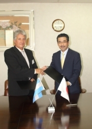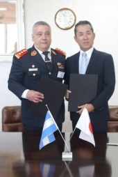 平成29年1月26日、在アルゼンチン日本国大使館内において、菱山臨時代理大使とエスコバル市ボランティア消防隊のレッタ理事長との間で、贈与契約書の署名が行われました。これは、ブエノスアイレス州エスコバル市で活動するボランティア消防隊に、厚木市消防本部提供による中古はしご消防車を(一社)日本外交協会の協力により整備して供与するプロジェクトに対して、支援を行うものです。