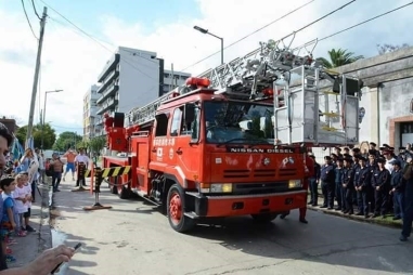 平成29年11月8日、ブエノスアイレス州エスコバル市のエスコバル市ボランティア消防署において、福嶌大使、レッタ・エスコバル市ボランティア消防隊理事長、ポンセ同消防隊長、スハルチュック・エスコバル市長、ヒキ・エスコバル日本人会会長の他、同消防隊関係者、マスコミ等の多くの方々の同席のもと、中古はしご消防車の供与式典が執り行われました。