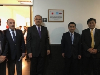 平成29年10月7日、ブエノスアイレス市のニッカイ共済会診療所において、福嶌大使、玉置ニッカイ共済会会長、サカタ・ニッカイ共済会診療所長、生垣在亜日系団体連合会会長、各地域の日本人会会長、同診療所関係者、マスコミ等の多くの方々の同席のもと、血液分析機器及び眼科検査機器等の医療機材の供与式典が執り行われました。
